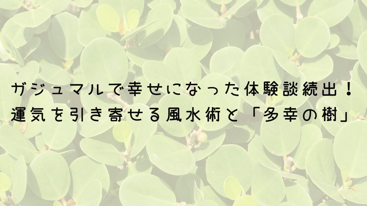 ガジュマルを大きくしたくない!今のサイズを10年キープする「3つの抑制術」 2026.04.05 ガジュマル masato LeafyLife ガジュマルで幸せになった体験談続出!運気を引き寄せる風水術と「多幸の樹」の秘密 2026.04.05 ガジュマル masato LeafyLife ガジュマルはどこまで大きくなる?室内での限界とサイズを抑える剪定術 2026.04.05 ガジュマル masato LeafyLife ガジュマルの水やり頻度は季節で変える!失敗しないための判断基準を徹底解説 2026.04.05 ガジュマル masato LeafyLife 葉が黒くなるガジュマルを救え!環境改善と正しい手入れ 2025.03.27 ガジュマル masato LeafyLife ガジュマルの「葉が全て落ちた」原因と復活させるコツを紹介 2025.02.26 ガジュマル masato LeafyLife ガジュマルに「カビが生える」原因と正しい対策方法を徹底解説 2025.02.26 ガジュマル masato LeafyLife ガジュマル栽培の初心者必見!「葉の色が薄い」原因と改善策を徹底解説 2025.02.26 ガジュマル masato LeafyLife ガジュマル「葉がよれよれ」で気になる方!原因と解決法を徹底解説 2025.02.26 ガジュマル masato LeafyLife パンダガジュマルは難しい?初心者でも育てられるコツを解説 2025.02.25 ガジュマル masato LeafyLife もっと見る